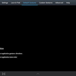 ★ Custom actions – LaunchPad, Start application, Previous Application, Next application, Home, Kill current application, Back, Forward, Recent application list, Recent application dialog, Menu, Notification Panel, Hide/Show status bar, Start launcher shorcut(bookmark, contacts, settings, etc), Start Tasker task, Pause gestures, Exit, Screen Off (lock), Alt+Tab, Music Play/Next/Previous, Volume, Search, Voice Search, Select Input Method.